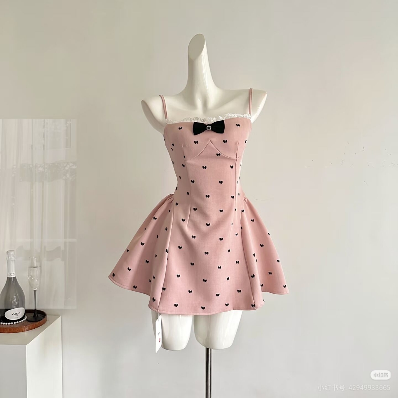 蓝色蝴蝶结挂脖短裙$48.00